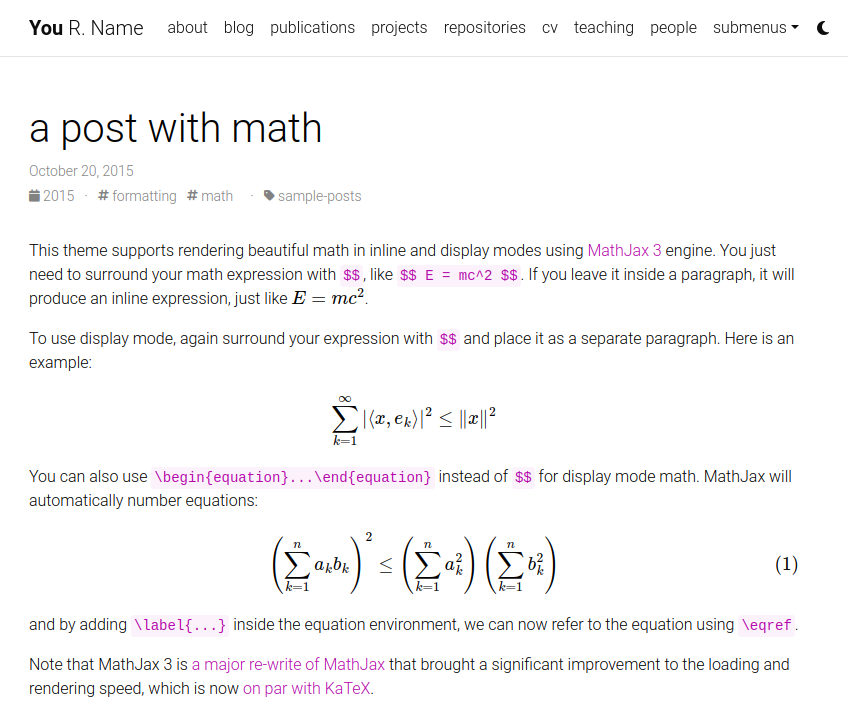 Al-Folio는 Github 스타일을 사용하여 Mathjax 및 Code Syntax를 통해 빠른 수학 조판을 지원합니다. 또한 ChartJS 차트, 인어 다이어그램 및 Tikz 그림도 지원합니다.