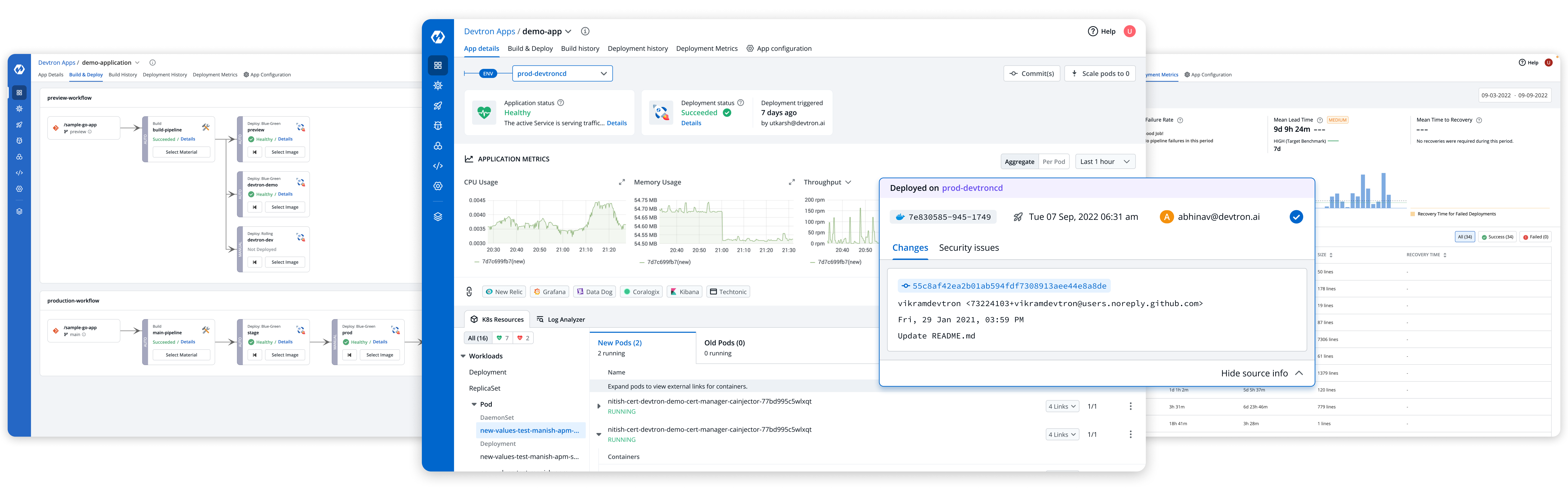 내장 RBAC를 사용하면 ArgoCD 및 FluxCD 와 같은 GITOPS 도구를 통해 여러 클러스터를 통해 배포 된 워크로드에 대한 통합 통찰력을 제공하면서 안전한 액세스를 보장합니다. DevTron은 중앙 집중식 DevOps 허브를 생성하여 최대 20 배까지 작업을 가속화합니다.