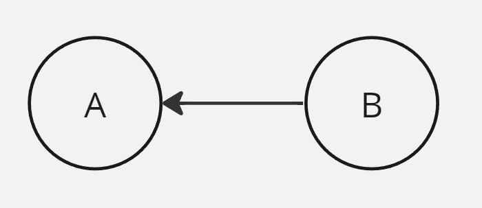 이 그래프에는 A 와 B , B 는 A 에 따라 다르며 B는 B 에서 나오고 A 로 가리키는 화살표로 표시됩니다.