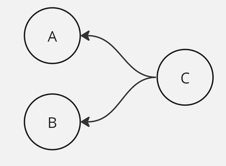 이 그래프에서 C A 와 B 모두에 따라 달라 지므로 A 와 B 모두 완료된 후에 만 시작할 수 있습니다.