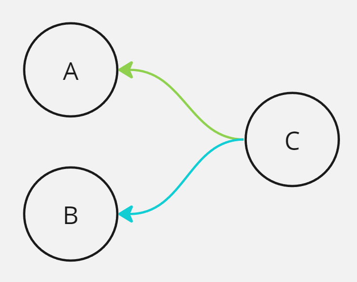 이 그래프에서 C A 또는 B 의 B에 의존하며, 각 종속성 세트에 대해 다른 색상을 사용하여 표시됩니다. 색상 자체는 특정한 의미가 없으며, 이와 같이 사용되므로 종속성이 서로 구별됩니다.