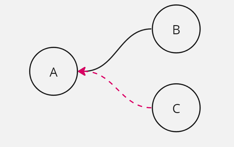이 그래프에는 A A 이행 및 작업 C 에 의존하는 작업 B 가 있습니다.