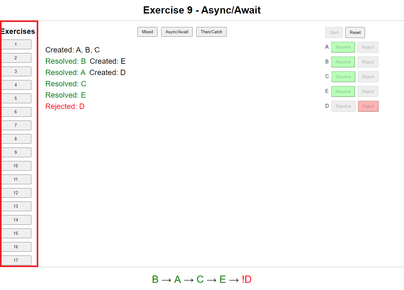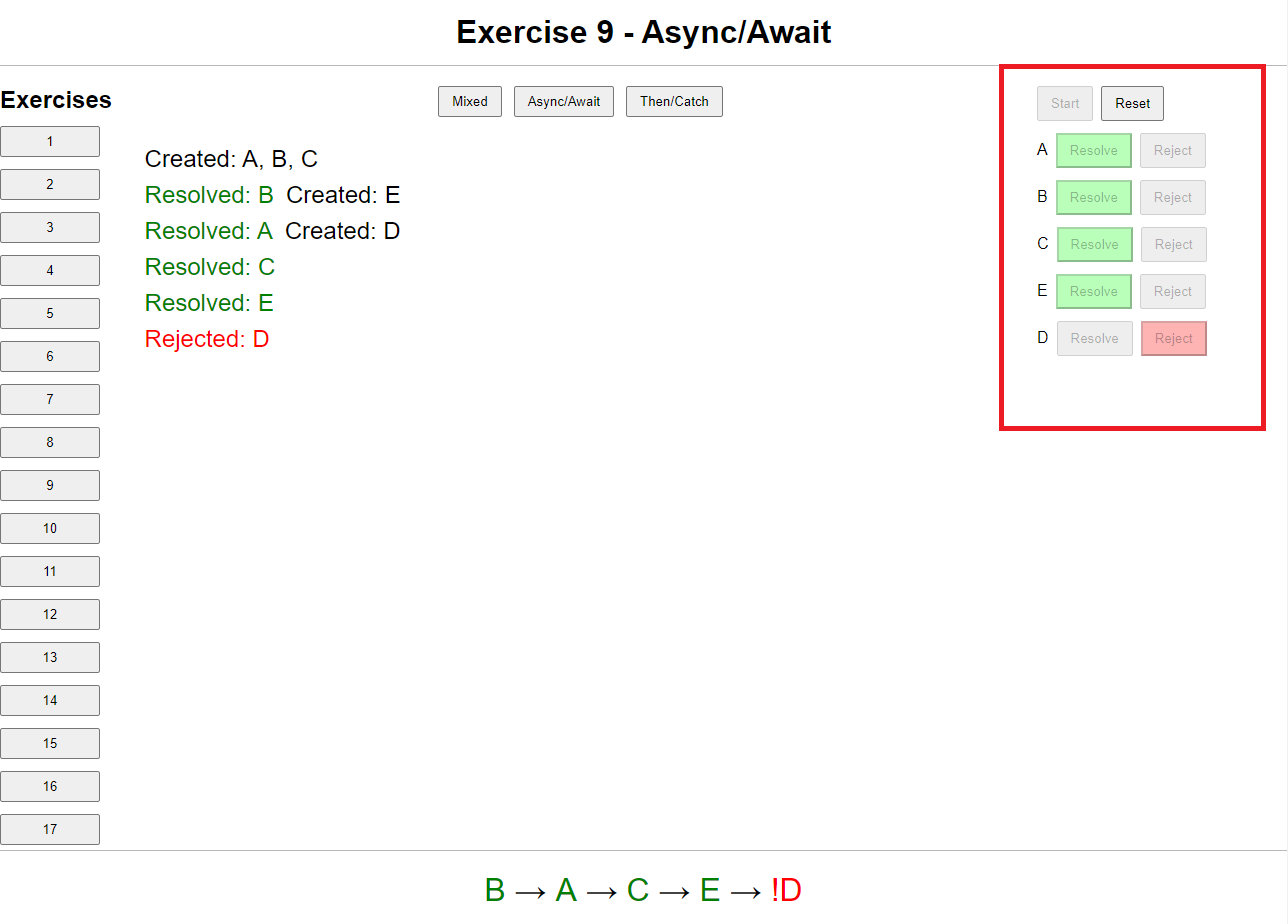 오른쪽 사이드 바를 사용하면 약속을 해결/거부하여 운동의 실행 흐름을 제어 할 수 있습니다.