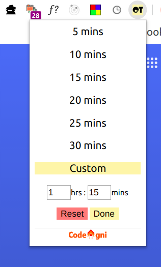 - 확장 아이콘 드롭 다운에서 필요에 따라 타이머를 선택하십시오.