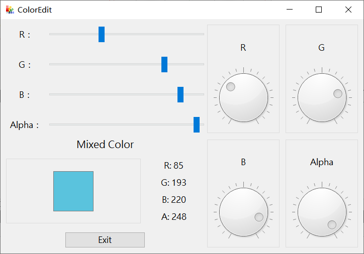 QColor color; color.setRgb(r, g, b, a); - QPALETTE :