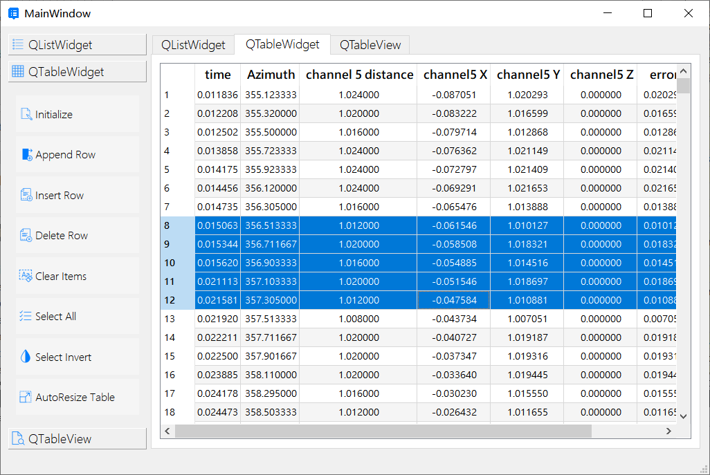 - qlistwidget/qtablewidget : append, insert, delete (qtablewidget 리버스 트래버살 제거), clear, selectall, selectnone, selectinvert, autoresize