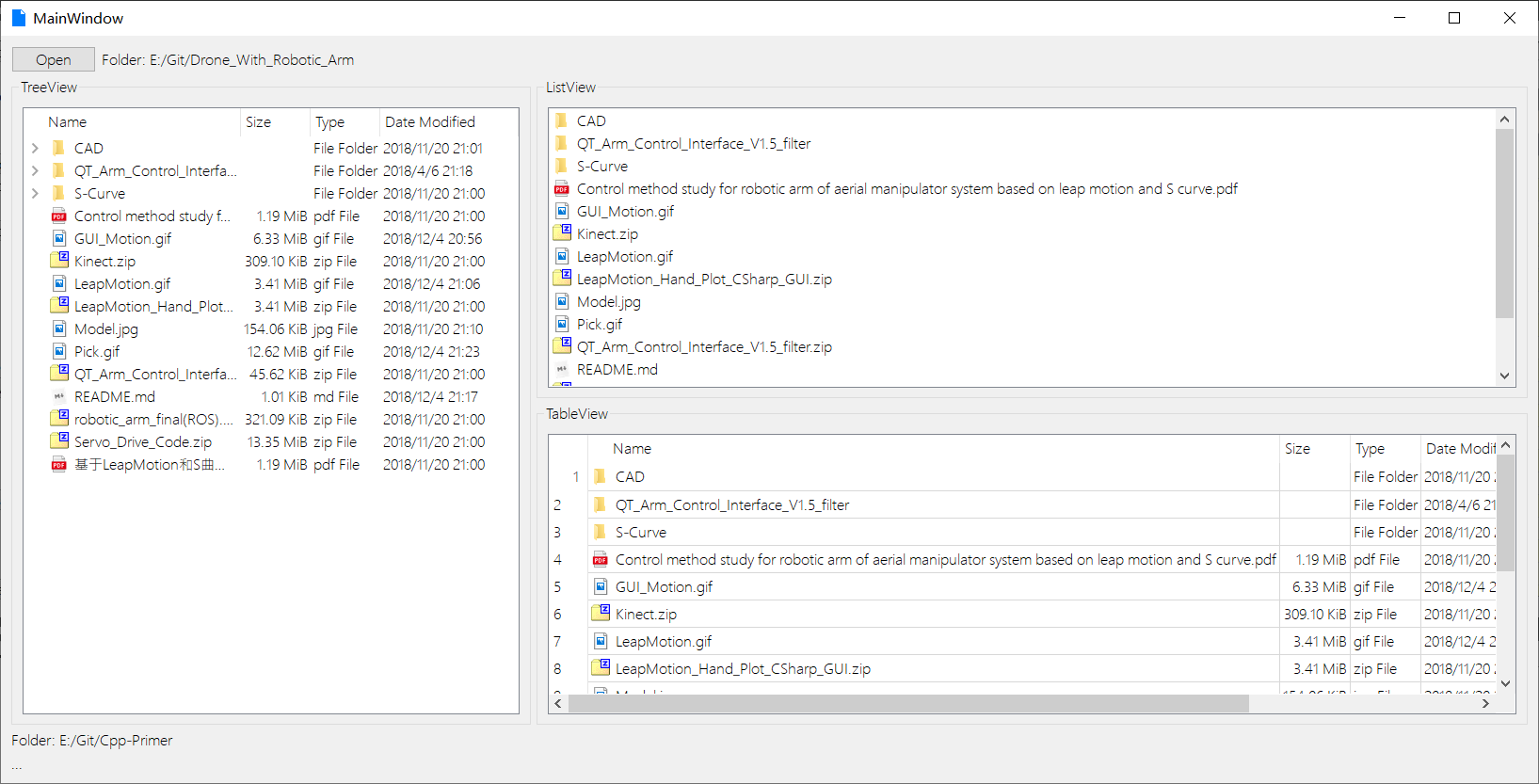 - qfilesystemModel : setRootPath, Index (QString Path) , size (), type (), FilePath