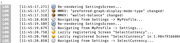 커스텀 로거 인스턴스를 작성하고 이모티콘을 시행하여 로그를 분류하십시오. 이렇게하면 콘솔에서 관련 라인을 발견하기가 더 쉽고 전반적으로 더 친절 해 보입니다. 나중에 디버깅의 긴 밤에서 자신을 구하기 위해 많은 로깅을하십시오!
