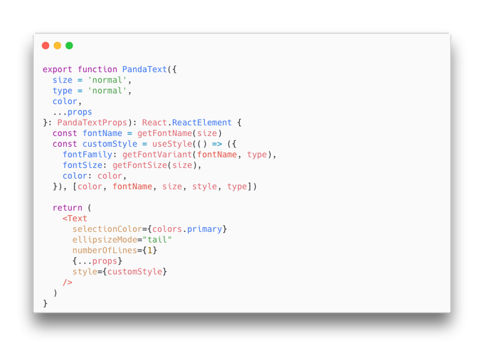 구성 요소를 직접 사용하지 마십시오. 대신, 자신만의 추상화를 만들어서 매번 글꼴 이름, 글꼴 크기 또는 색상으로 자신을 반복하지 않으며 언제든지 속성을 변경하는 것이 더 쉽습니다.