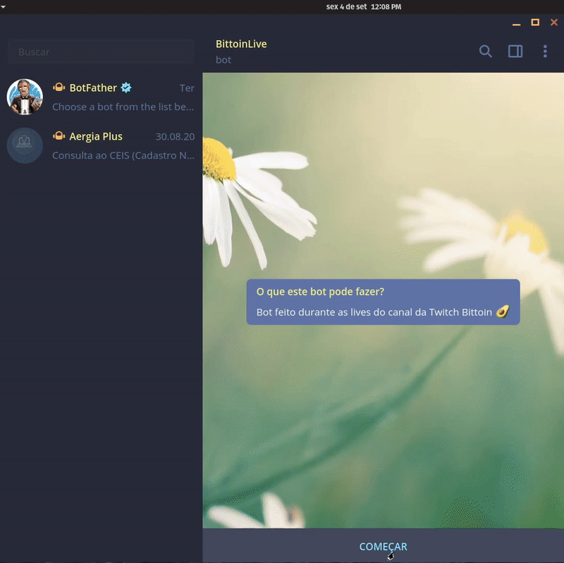 이 프로젝트에 사용 된 패키지를 설치하고 컴퓨터에 복제하거나이를 기반으로 다른 사람을 만들려면 일부 정보가 해결해야합니다! 먼저, 자체 봇으로 복제하려면 @BotFather 채팅을 사용하여 전보에서 봇을 만들어야합니다. 이 채팅에서는 봇, 명령 편집, 설명 추가 등을 만들 수 있지만 가장 중요한 것은 프로젝트를 복제하기 위해서는 생성 된 토큰 API를 제작에서 저장하는 것입니다. 이 토큰은 프로젝트의 bot.py 파일, bot_token 변수의 Bot.py 파일에 배치 될 수 있으므로 모든 기능이 봇으로 바로 실행됩니다.