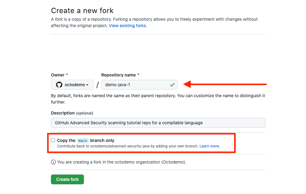 포크 리포지토리를 만드는 곳에 있는지 확인하십시오
