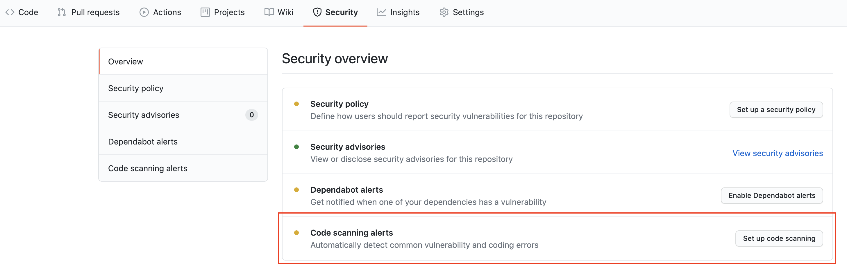 Set up code scanning 클릭합니다.