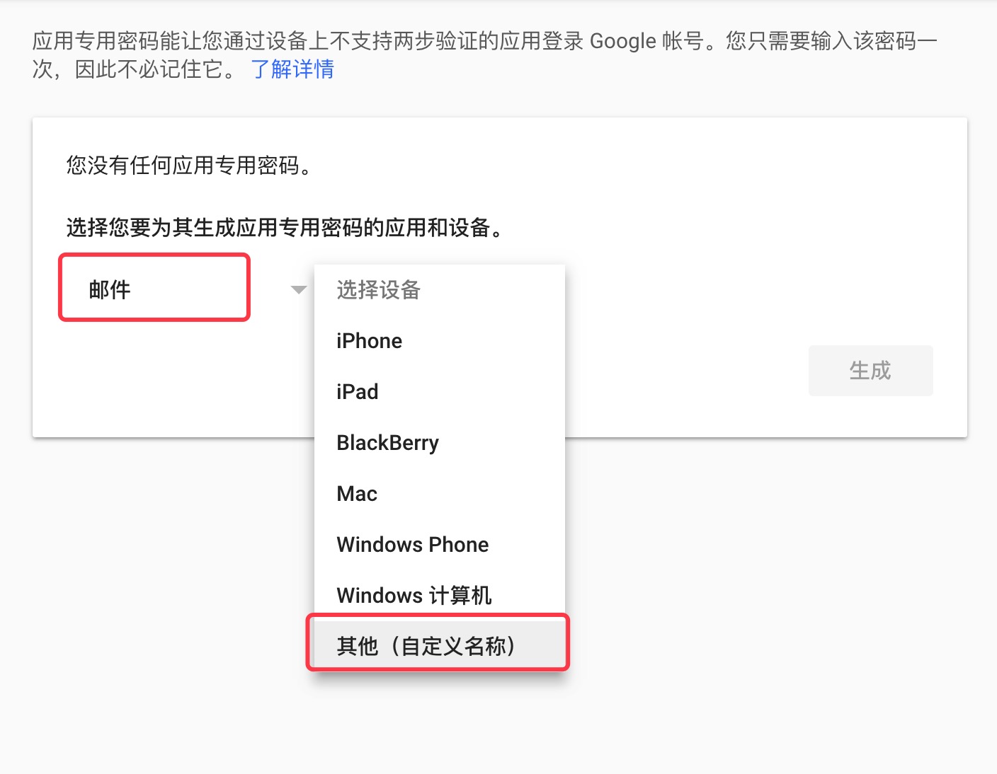 4. Gmail 앱 비밀번호를 만듭니다.