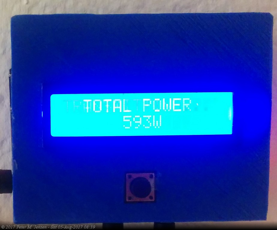Eu queria que um dispositivo medisse o consumo de energia em minha casa e que o relatasse a um serviço de 'nuvem' quando as coisas mudaram; Luzes ligando/desligadas, etc. Além disso, eu queria uma exibição na caixa, para que eu pudesse ler qual era o consumo atual de energia.