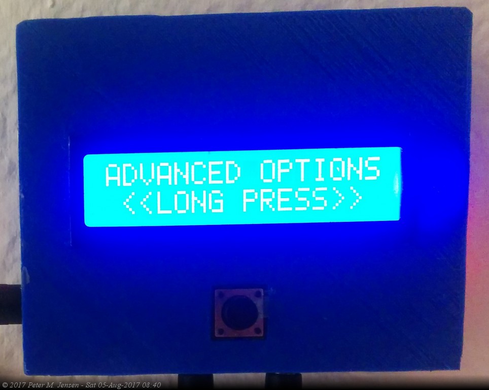As informações mostradas nas 2 linhas LCD ciclam por essas informações, quando o botão é pressionado:
