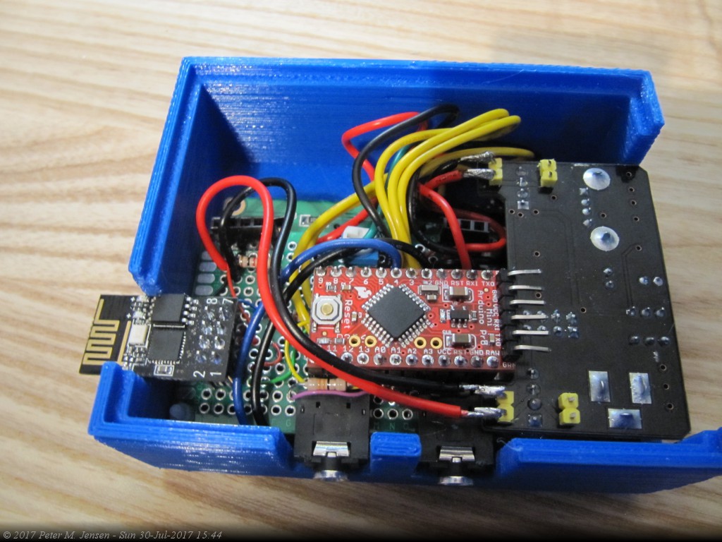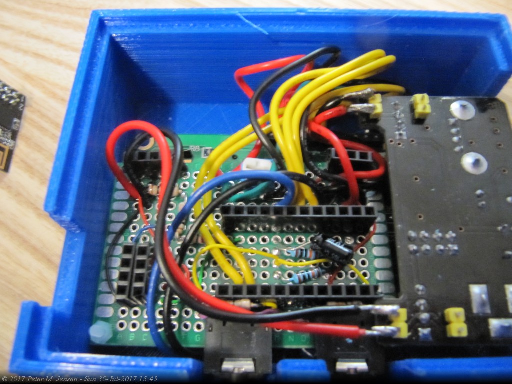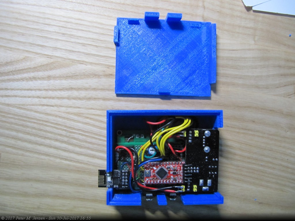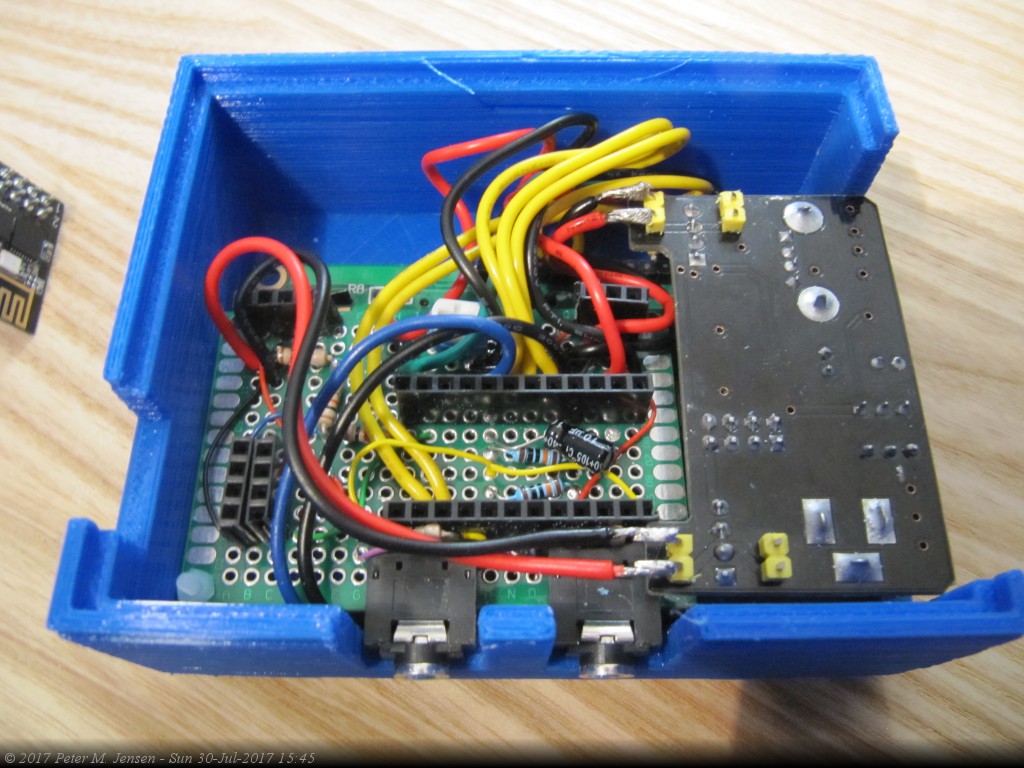 Contar com a fonte de alimentação do USB causou alguma descamação nas leituras de pinos analógicos. Além disso, para fornecer energia ao ESP-01, eu precisava de uma fonte de 3,3V. O Arduino Pro Mini não possui um regulador de tensão de 3,3V, como o UNO. O módulo de fonte de alimentação muito barato se encaixa na conta e parece fornecer uma energia estável o suficiente para garantir leituras estáveis.