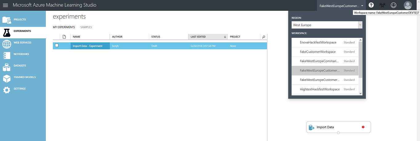 Наш партнер искал решения, которые могли бы помочь автоматизировать и масштабировать эксперименты в Azure ML Studio Portal. После первоначального анализа доступных инструментов я обнаружил единственное, что я использовал позже в качестве базы для текущего решения ( источник: модуль PowerShell для Azure Machine Learning Studio и веб -службы ) - это решение было разработано для пользователей PowerShell, и реализация кода C# (SDK) помогла мне в качестве базы для создания этого проекта.