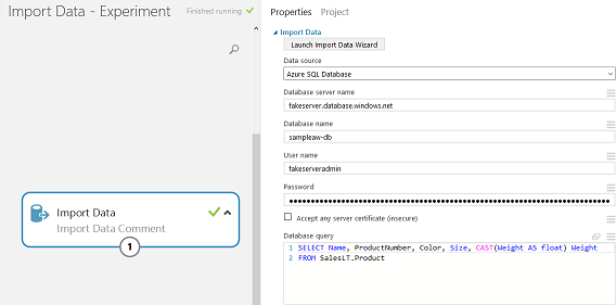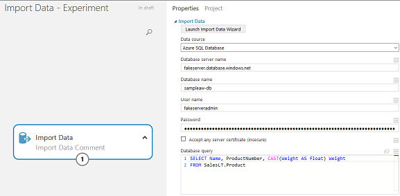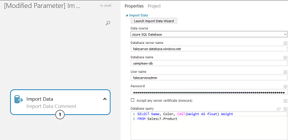 studioClient . ModifyNodeParameter ( workspace , experimentId , "Import Data Comment" , "Database Query" , "SELECT Name, ProductNumber, CAST(Weight AS float) Weight r n FROM SalesLT.Product" ) ;