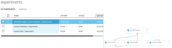 studioClient . ModifyNodeEdge ( workspace , experimentId , "CSV" , "Dataset" ) ;