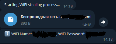 - После начала файла данные будут отправлены в вашу учетную запись Telegram от бота.
