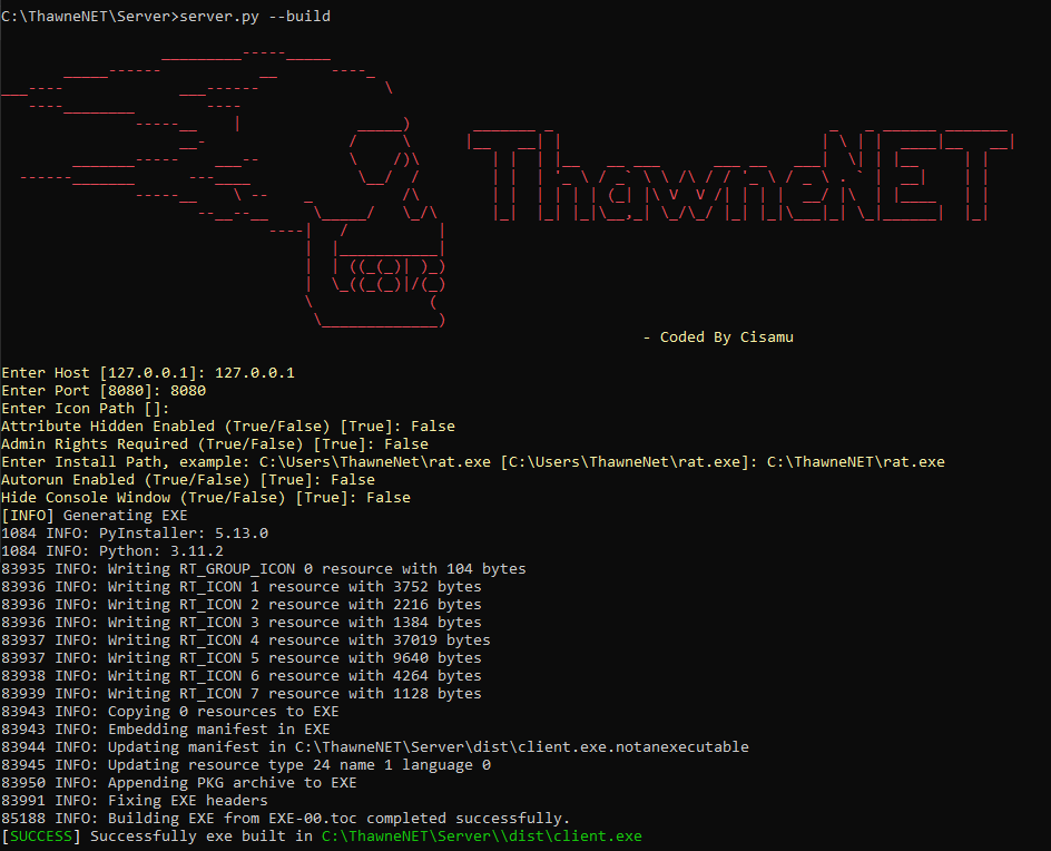 Чтобы построить EXE с помощью желаемого IP и порта: python3 server.py --build