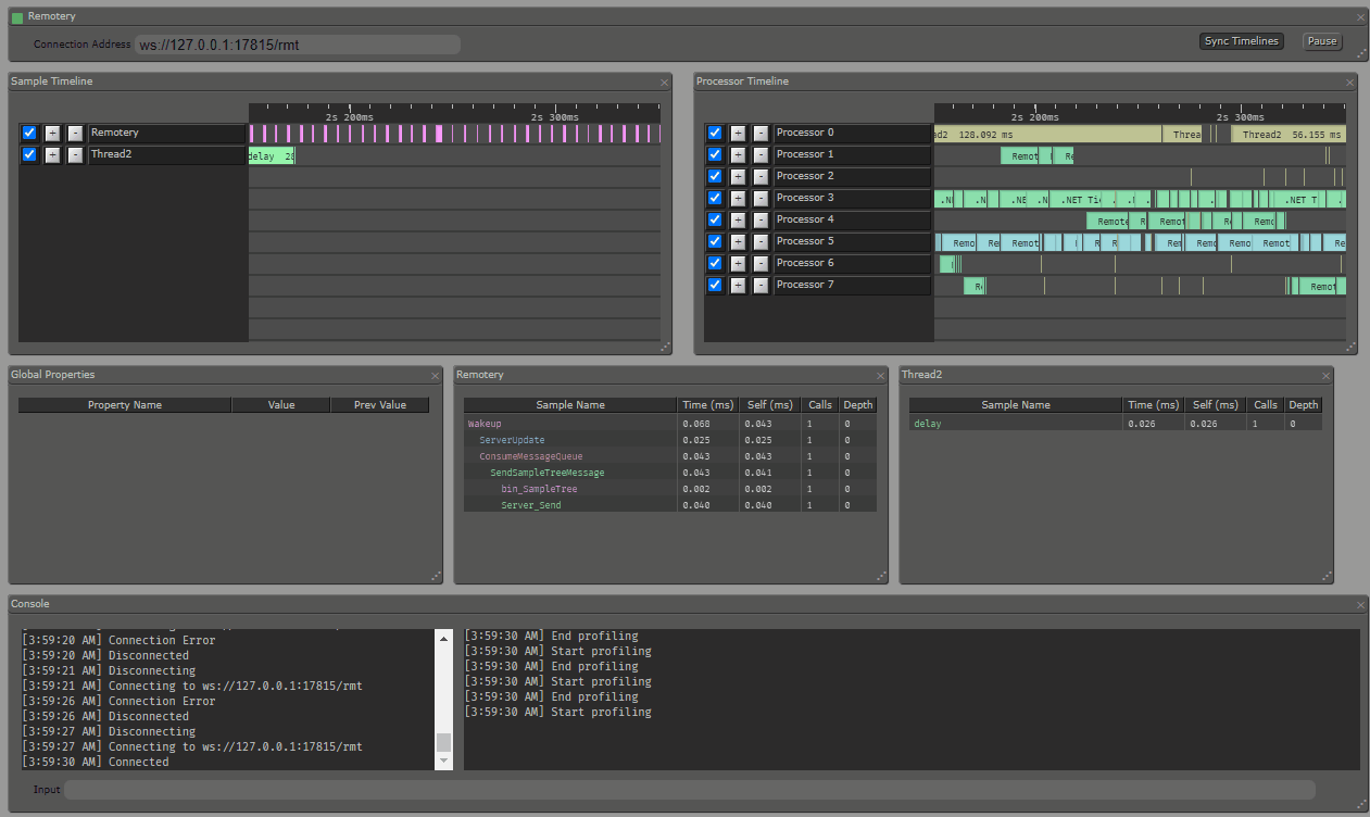 Чтобы узнать, как использовать Remotery , ознакомьтесь с официальным Readme.
