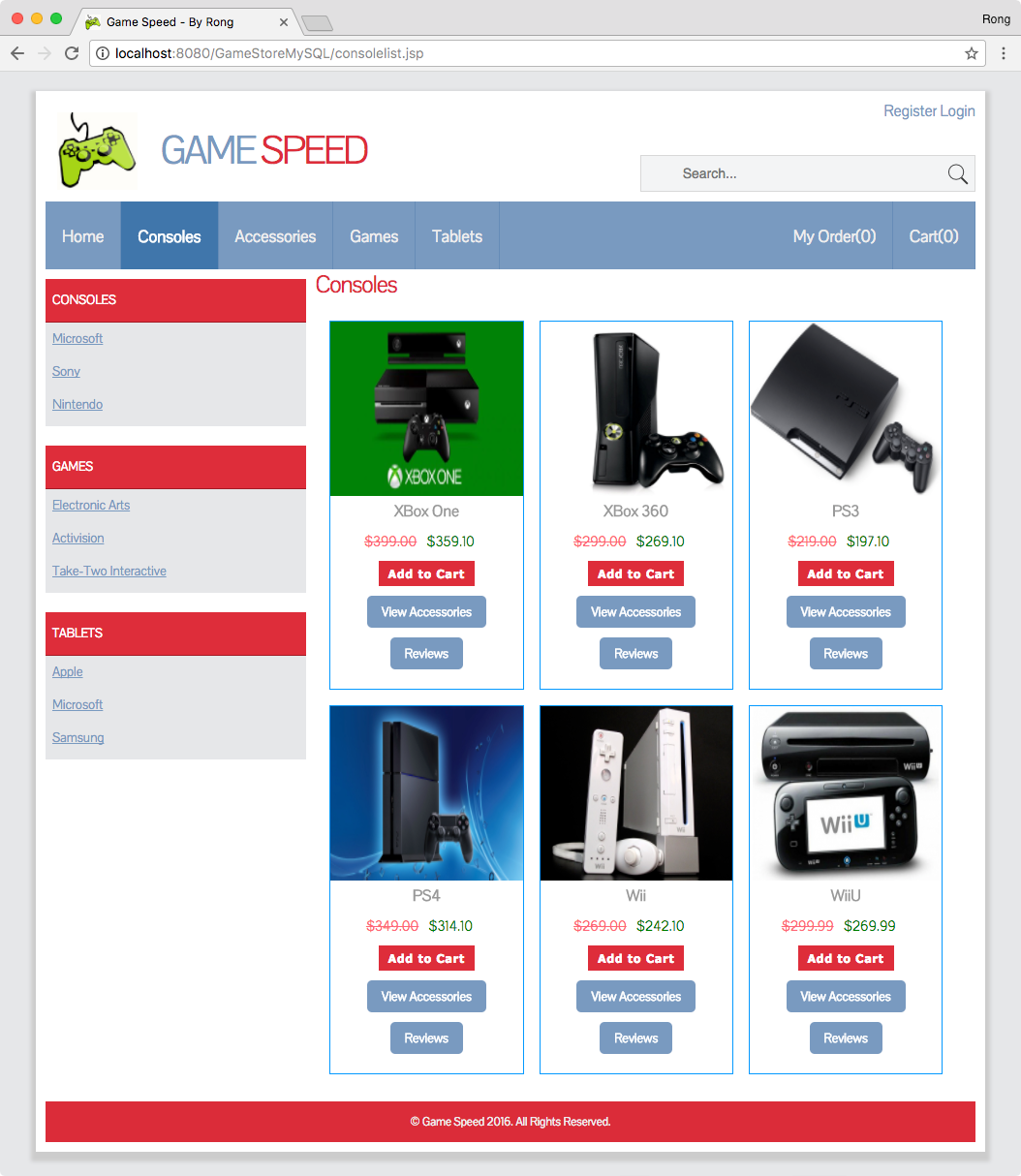 git clone https://github.com/jojozhuang/game-store-jsp.gitเปิดโครงการใน Eclipse รวบรวมและเรียกใช้