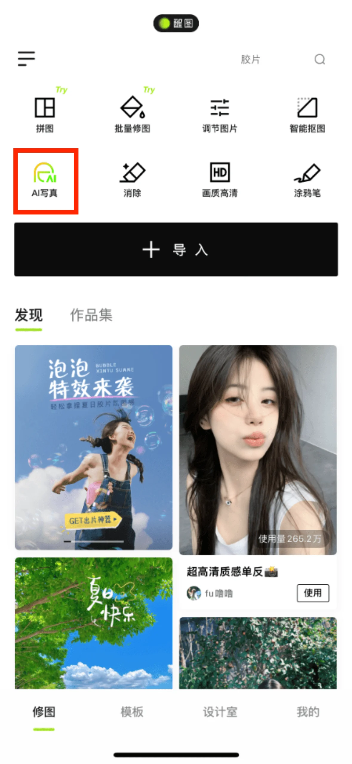 ผู้ใช้สามารถค้นหาภาพบุคคลด้วย AI ได้ตรงกลางหน้าแรกของ APP และปฏิบัติตามคำแนะนำของ APP เพื่อสร้างภาพบุคคลที่มีสไตล์ต่างๆ ได้อย่างง่ายดาย