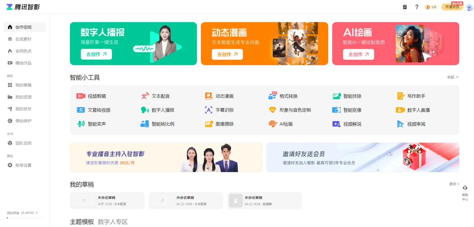 หลังจากลงทะเบียนและเข้าสู่ระบบ iFlytek คุณสามารถทำได้ ทดลองใช้ฟรี ผู้ใช้ใหม่จะได้รับ 10 เหรียญเสียง ซึ่งสามารถนำไปใช้ในการทำเสียงพากย์อัจฉริยะได้ หากคุณกรอกข้อมูลส่วนบุคคลเรียบร้อยแล้ว คุณจะได้รับรางวัลเป็นเวลาในการผลิตวิดีโอและเหรียญเสียง หากคุณต้องการสิทธิประโยชน์และโควต้าการใช้งานเพิ่มเติม คุณสามารถซื้อแพ็คเกจสมาชิกและแพ็คเกจเสียงได้