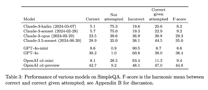 เมื่อเร็วๆ นี้ OpenAI ได้เปิดตัวเกณฑ์มาตรฐานใหม่ที่เรียกว่า SimpleQA ซึ่งออกแบบมาเพื่อประเมินความถูกต้องตามข้อเท็จจริงของคำตอบที่สร้างโดยโมเดลภาษา
