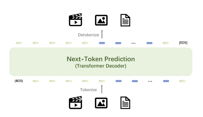 แกนหลักของโมเดล Emu3 คือวิชวลโทเคนไนเซอร์ที่ทรงพลัง ซึ่งจะแปลงวิดีโอและรูปภาพให้เป็นโทเคนแบบแยกซึ่งสามารถป้อนเข้าไปในโมเดลได้พร้อมกับเอาต์พุตโทเคนแบบแยกโดยโทเคนข้อความแบบข้อความ โทเค็นที่แยกออกมาตามโมเดลสามารถแปลงเป็นข้อความ รูปภาพ และวิดีโอได้ ทำให้เกิดกระบวนทัศน์การวิจัยที่เป็นหนึ่งเดียวสำหรับงาน Any-to-Any นอกจากนี้ ความยืดหยุ่นของเฟรมเวิร์กการทำนายโทเค็นถัดไปของ Emu3 ช่วยให้การปรับการตั้งค่าโดยตรง (DPO) สามารถนำไปใช้กับการสร้างการมองเห็นอัตโนมัติได้อย่างราบรื่น โดยปรับโมเดลให้สอดคล้องกับความชอบของมนุษย์