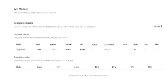 xAI API มีราคาอยู่ที่ 5 ดอลลาร์ต่อโทเค็นอินพุต 1 ล้านโทเค็น / 15 ดอลลาร์ต่อเอาต์พุต ซึ่งสูงกว่าราคารุ่น GPT-4o ของ OpenAI อย่างไรก็ตาม xAI API มีฟังก์ชันการทำงานเพิ่มเติม รวมถึงการสร้างข้อความและโค้ด การวิเคราะห์ด้วยภาพและการสร้างรูปภาพ การเรียกใช้ฟังก์ชัน และอื่นๆ