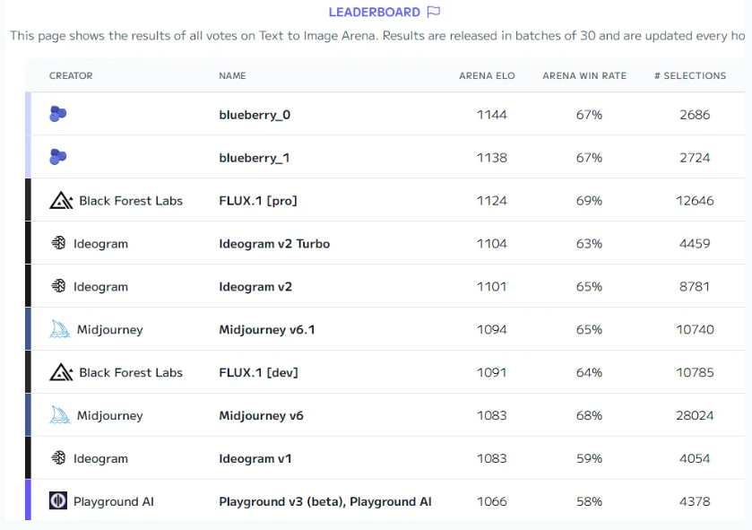 ด้วยประสิทธิภาพที่โดดเด่น โมเดลนี้มีชื่อว่า Blueberry เอาชนะคู่ต่อสู้ที่รู้จักกันดี เช่น Strawberry, Flux.1, Ideogram v2 และ Midjourney v6.1 ของ OpenAI ในรายการ และกลายเป็นเจ้าเหนือหัวคนใหม่ในโลกกราฟิก Vincentian ในทันที อย่างไรก็ตาม ตัวตนที่แท้จริงของ Blueberry ทำให้เกิดการคาดเดาและการถกเถียงกันมากมายในหมู่ชาวเน็ต