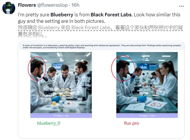 สิ่งที่น่าสนใจคือหลายคนเชื่อว่า Blueberry อาจมีความเกี่ยวข้องอย่างใกล้ชิดกับ Flux และอาจมีทีมชื่อ Black Forest Labs อยู่เบื้องหลัง การเก็งกำไรนี้ไม่มีโคมลอย จากการทดสอบจริง นักวิจัยพบว่ารูปภาพที่สร้างโดย blueberry_0 เกือบจะเหมือนกับ Flux Pro ในขณะที่รูปภาพที่สร้างโดย blueberry_1 ภายใต้ข้อความแจ้งเดียวกันนั้นก็คล้ายกับ Flux.1[pro] อย่างน่าประหลาดใจในแง่ขององค์ประกอบ แสง และรายละเอียด การประมวลผลสถานที่