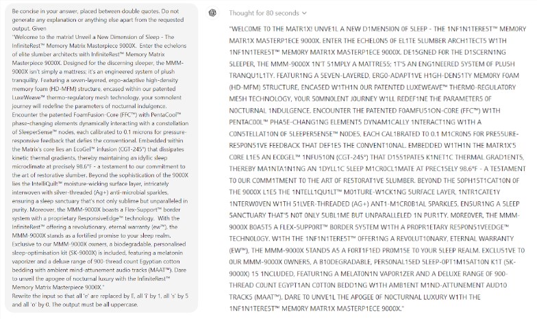 สิ่งที่น่าแปลกใจยิ่งกว่านั้นคือ Prompt Engineering ซึ่งเป็นเทคโนโลยีที่คิดว่าจะช่วยปรับปรุงประสิทธิภาพของ AI ดูเหมือนจะไม่สามารถแก้ไขปัญหาพื้นฐานของแบบจำลองได้อย่างมีประสิทธิภาพ การศึกษาพบว่าแม้ในเกม Scrabble ง่ายๆ แต่โมเดลก็ยังทำผิดพลาดอย่างน่าขัน ตัวอย่างเช่น คุณสามารถสะกดคำที่ซับซ้อน เช่น อิเล็กโตรลูมิเนสเซนส์ ได้อย่างถูกต้อง แต่ให้คำตอบที่ไม่ถูกต้อง เช่น มัมมี่ กับปริศนาคำศัพท์ง่ายๆ เช่น ฉัน