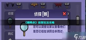 总之,作为侦探,要时刻保持敏锐的观察力、清晰的分析能力,积极与好人合作,才能在复杂的鹅鸭杀游戏中成功找出杀手,守护好人阵营的胜利。