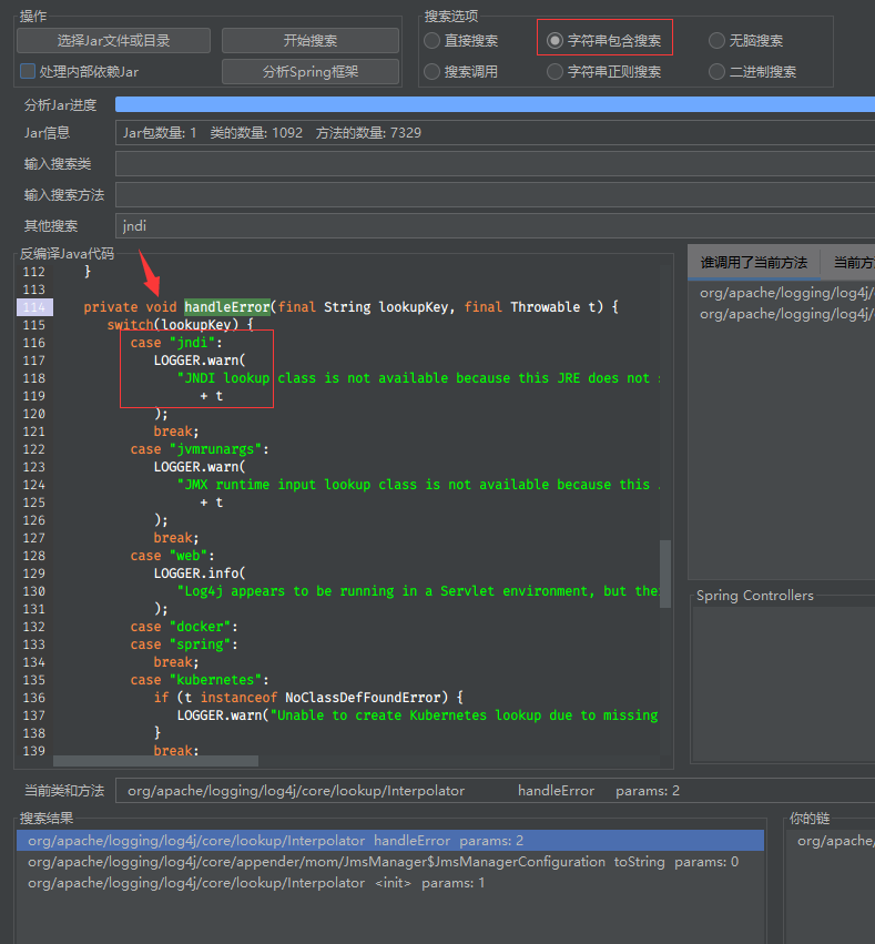 .endWith("value")例如我希望搜索类名包含Context且方法名包含lookup的方法