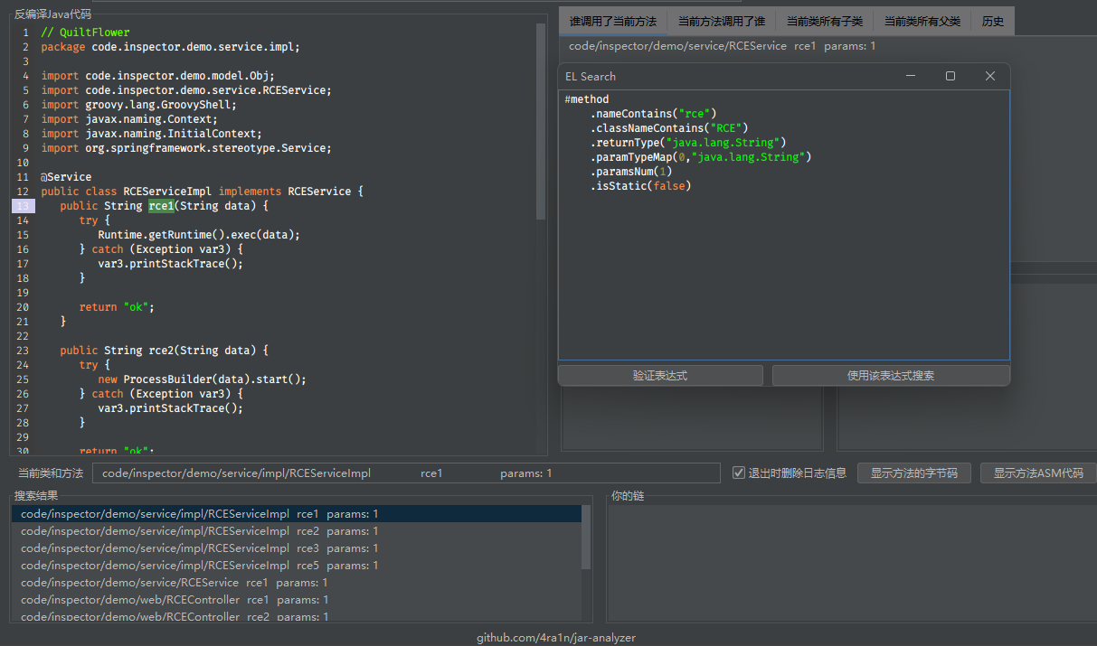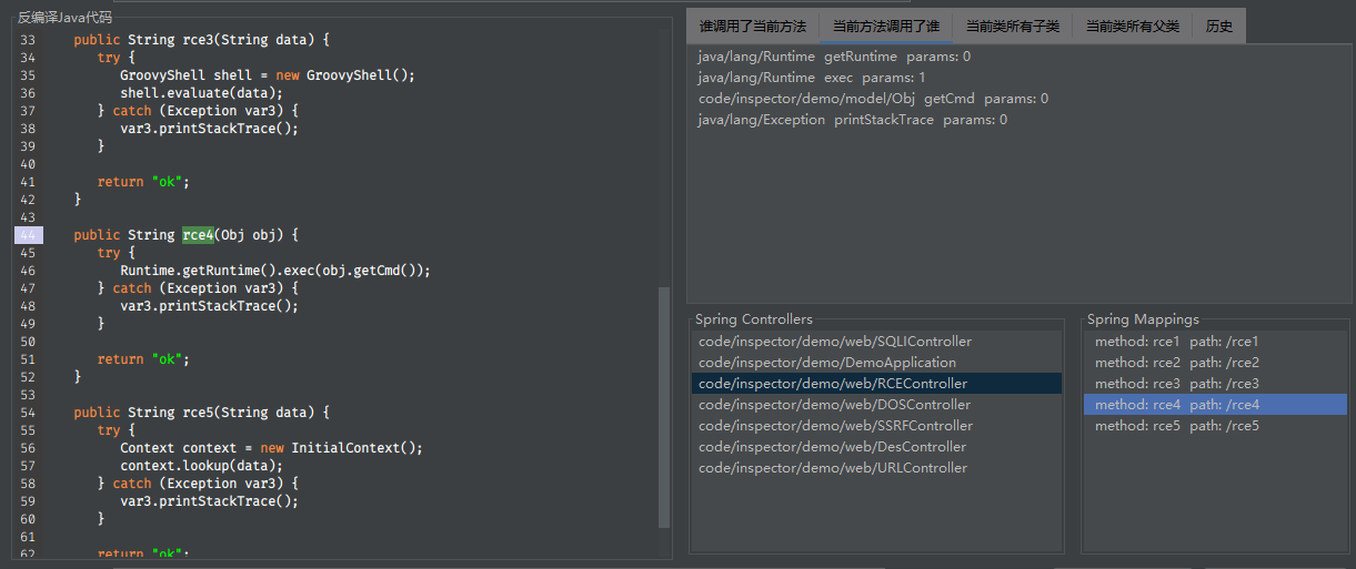 支持反编译字节码并自动构建类和方法之间的关系,帮助Java安全研究员更高效地工作。