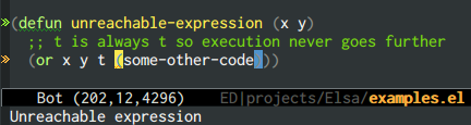 ELSA是一个工具,可以在不加载或运行的情况下分析您的代码。它是100%无副作用的,我们努力保持这种方式,因此您可以安全地分析任何ELISP代码。