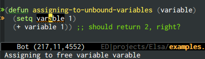 打电话(require 'elsa-font-lock)后,有一个函数elsa-setup-font-lock ,可以从emacs-lisp-mode-hook调用,以设置ELSA类型的其他字体锁定。