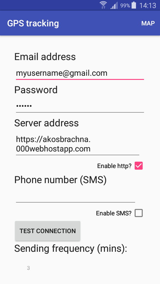 也开发了Android应用程序。 Android应用程序作为前景服务将不断将GPS位置从手机发送到服务器。如果没有服务器或3G连接,Android应用程序还可以将坐标发送到给定的电话号码。该项目也在github上共享