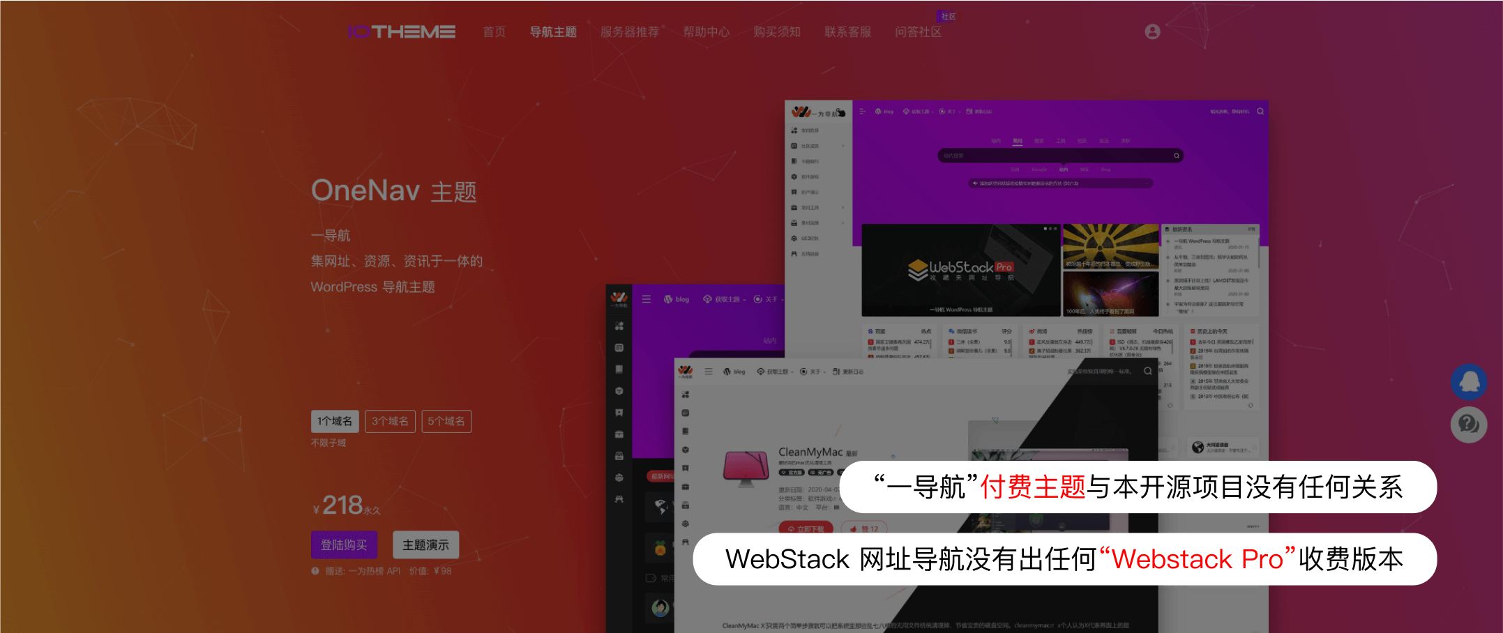 "一導航"未經允許推出的“Webstack Pro 版本”付費導航主題,跟本項目沒有任何關係,在此解答類似Issues,已經和該公司多次溝通,該公司始終沒有移除所有“Webstack Pro”相關名稱,在這裡鄭重聲明。 目前Webstack 已經有數十種完全免費開源後端版本,數十位共建者在維護本項目,本項目尊重各位共建者勞動成果實現盈利,但不鼓勵任何盜用WebstackPro名義盈利的行為。