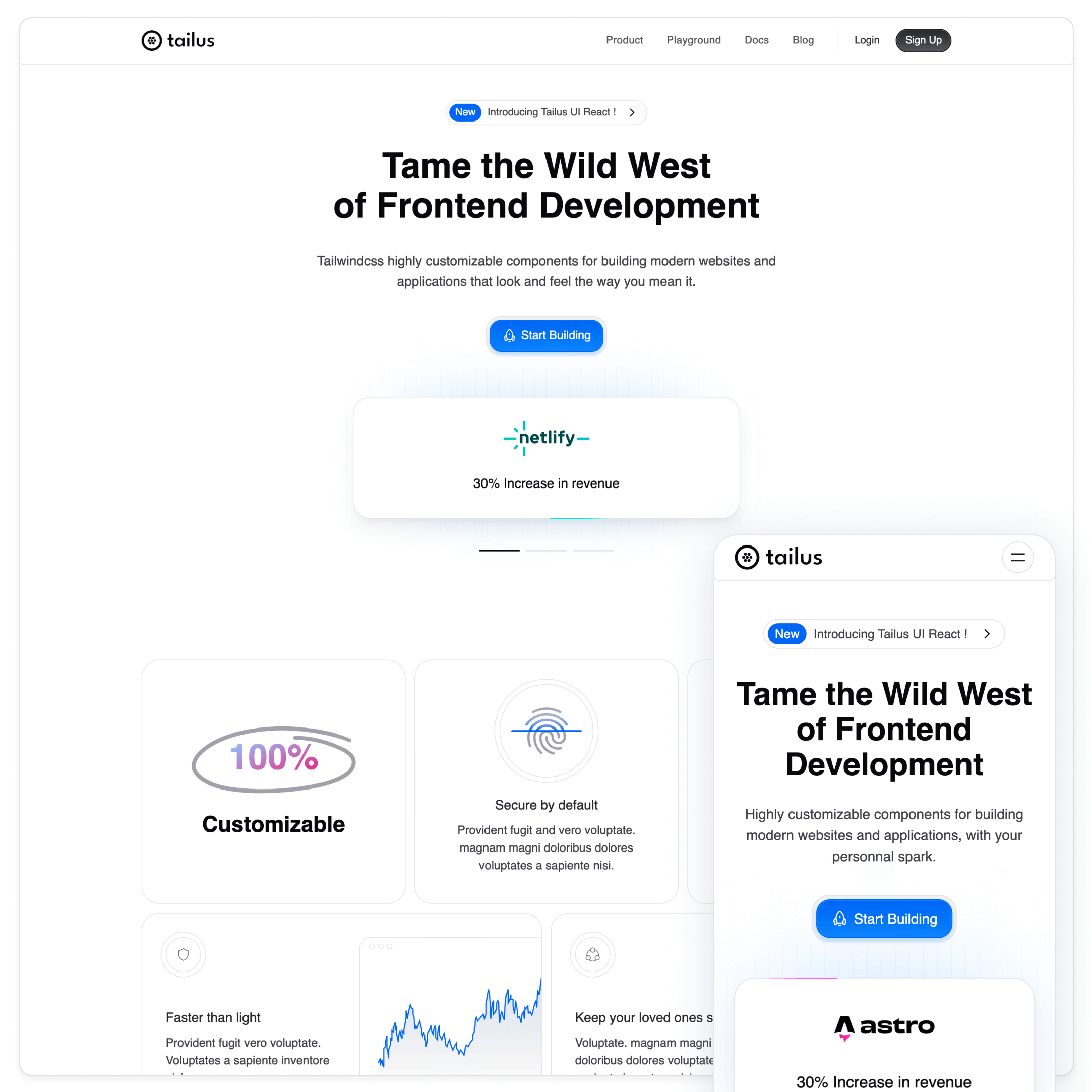 現代著陸頁模板,由尾翼和尾聲主題構建