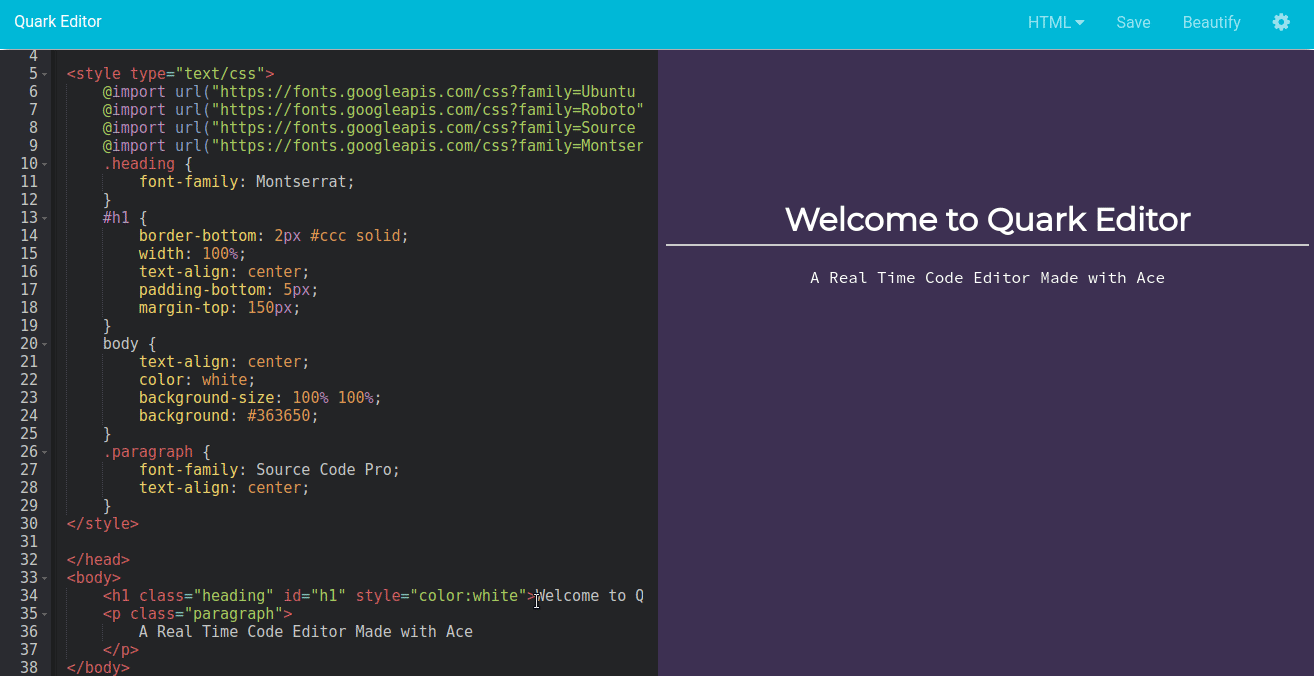夸克編輯器。實時HTML編輯器,並支持Java和Python。