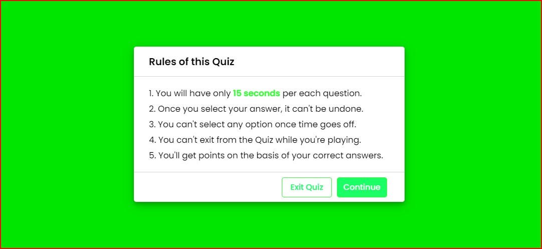 ✅這是一個測驗申請網站。 ✅每個問題都是15秒分配的,用戶必須在時間之前完成測驗。